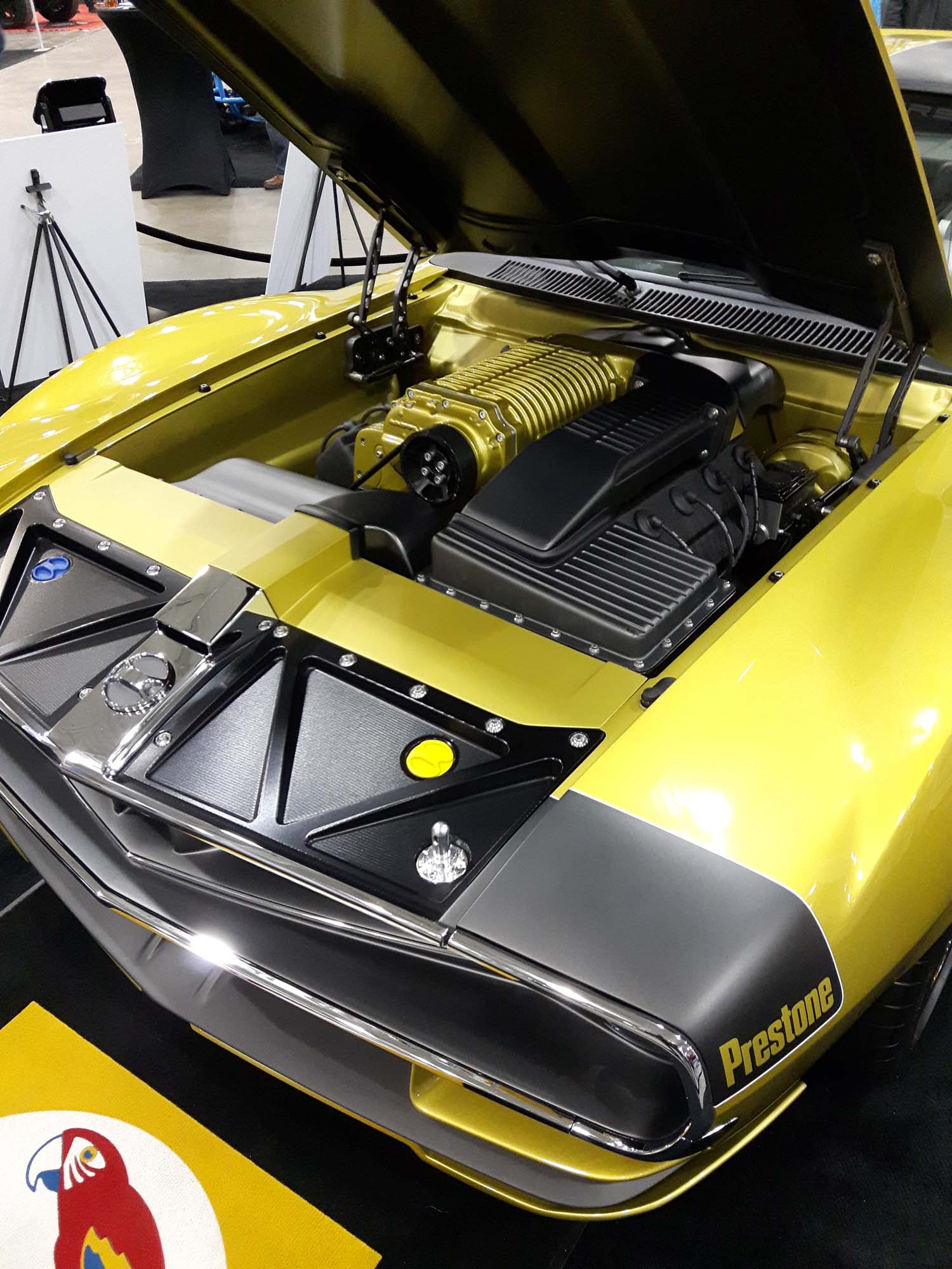 The workmanship on this build was beyond words and so was the attention to detail. I had the opportunity to talk to the person who was in charge of the actual build for Prestone and it was a very interesting conversation. About the only original pieces left of the car were the roof and the rear window. Everything else was made in their shop. The front wheels were moved forward 6.5 inches which necessitated new front fenders which were made out of carbon fiber as was the new hood. The rear fenders were also widened and also made of carbon fiber.