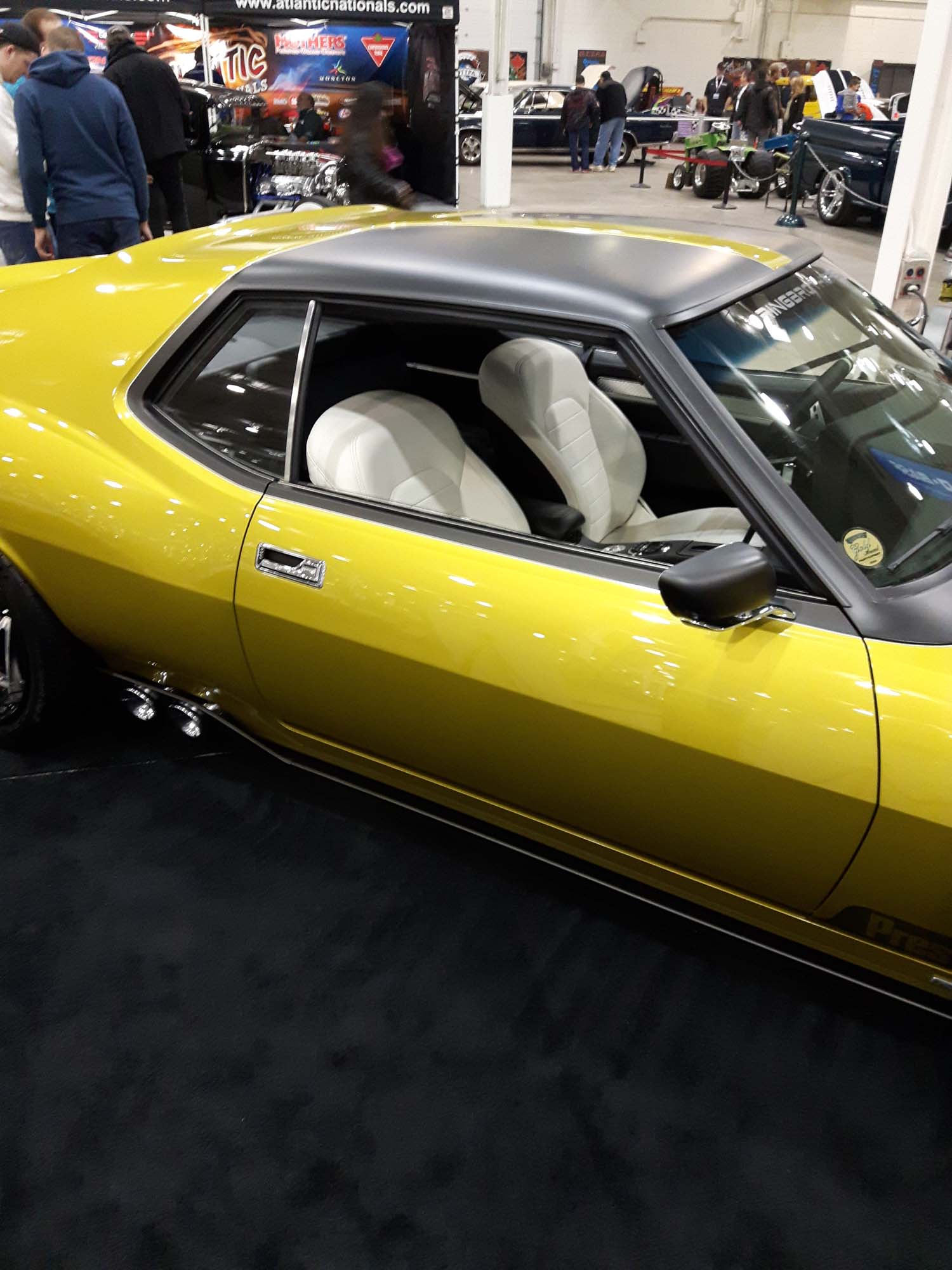 Since Chrysler bought out AMC, the Ring brothers felt it was fitting to use a Mopar engine and chose the 6.2L Hellcat V8 which was built to more than 1000 HP. When I asked what this all cost he did not want to quote any numbers but needless to say it is beyond the capabilities of the average guy. If you google Ring Brothers Defiant, you can watch and hear video of this car performing. Well worth the look. All in all a fabulous build which will put AMC back in peoples minds. Unfortunately it was the only AMC in the show. If anyone is interested in getting their AMC into the show next year get in touch with me as I have the contact info for the organizers of the show and maybe we can put some AMC flavour into the show. That’s all for now. Keep on AMC’n. Contributed by Roman B.