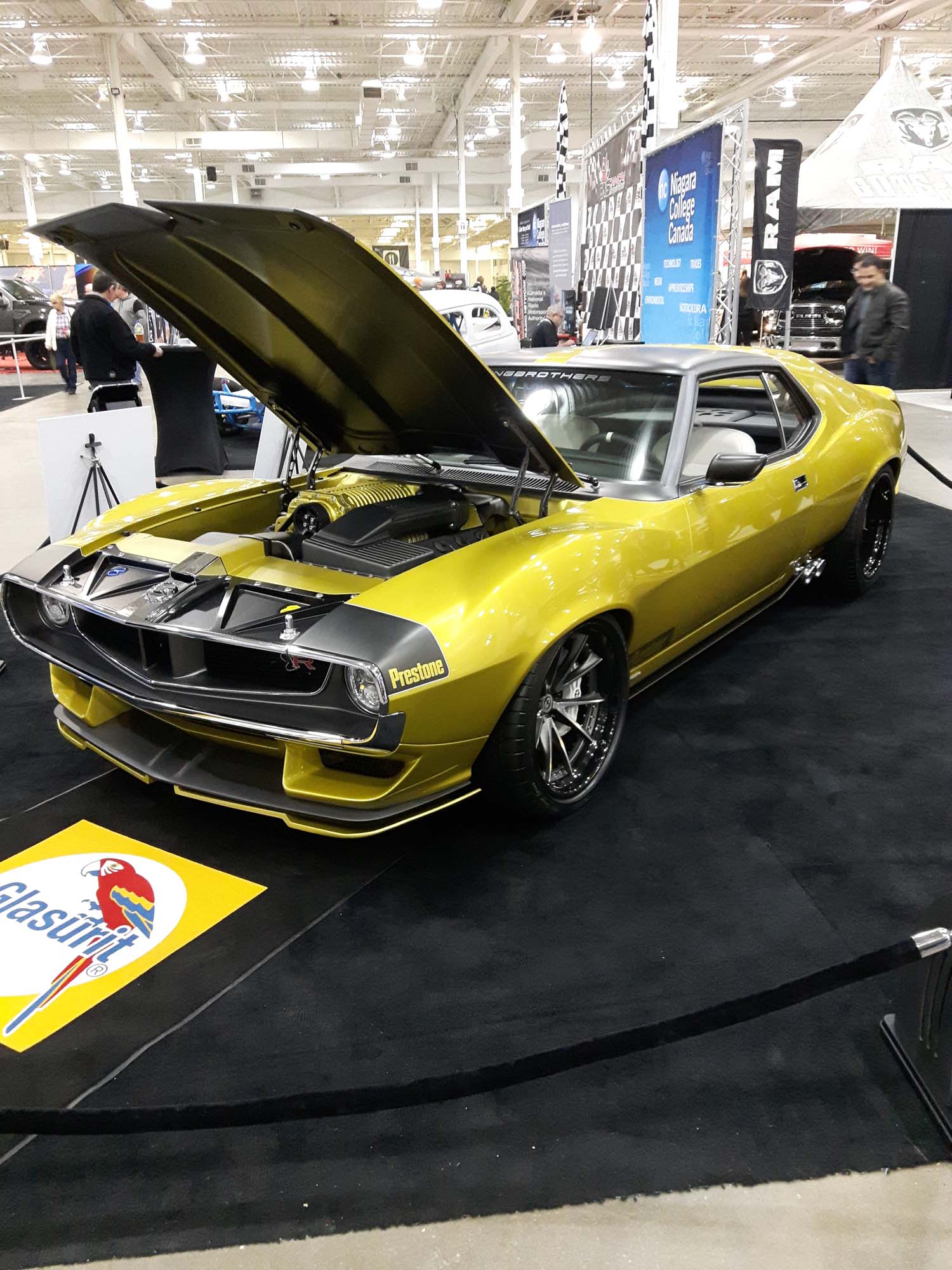 Last March I attended the Autorama muscle car show at the International Center near the airport in Toronto. Prestone had commissioned the Ring Brothers, of Spring Green Wisconsin to build a car for their 90th anniversary.The Ring brothers picked a 1972 Javelin AMX that they had known about for years and were able to buy. This car was displayed at this show. Now, I own a 71 Javelin AMX so that would make my opinion somewhat biased, however I thought it was the nicest car at the show.